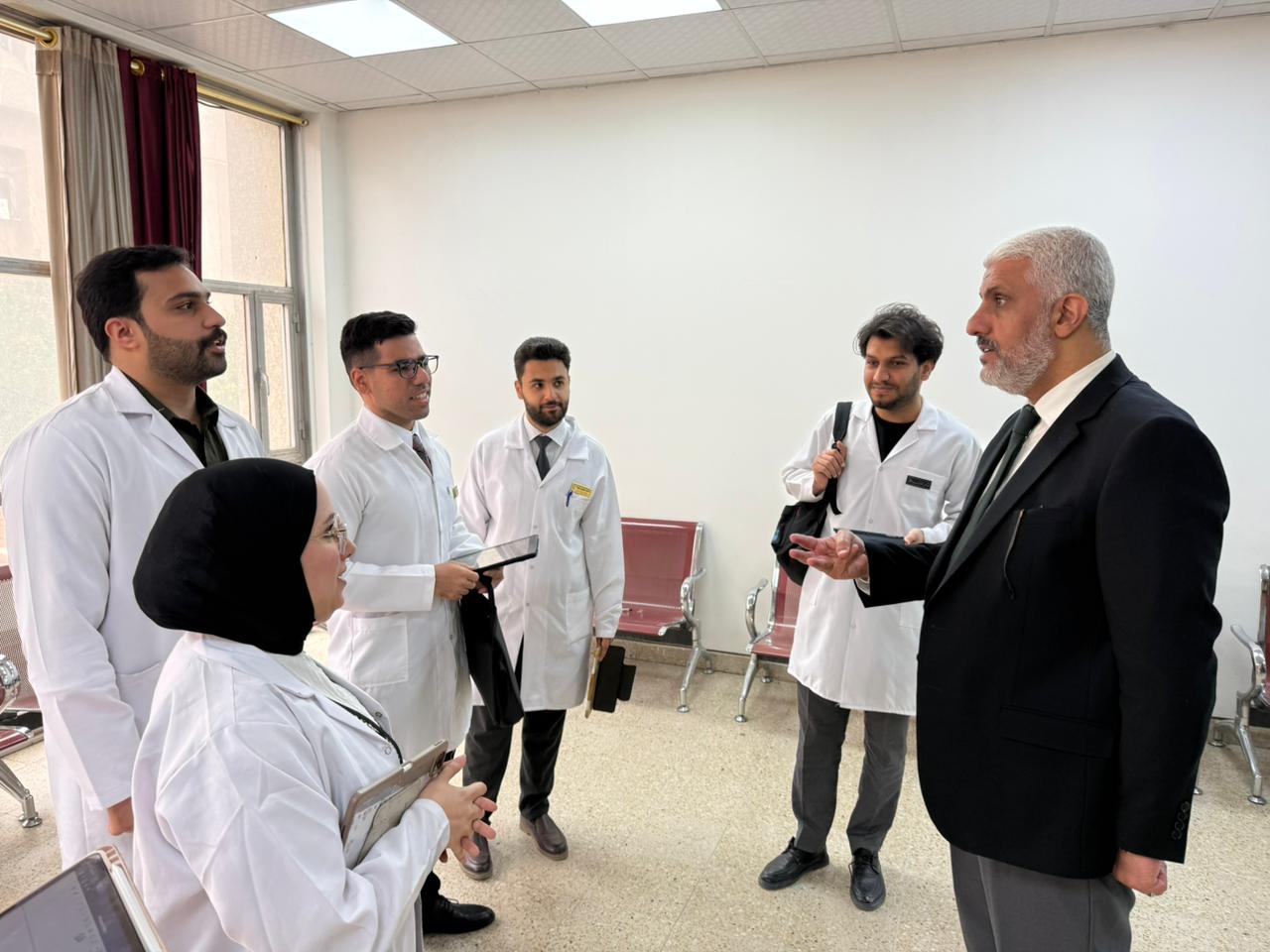 The Dean of the College of Medicine at Al-Nahrain University, Professor Dr. Anis Khalil Nayel, attended the graduation research discussions of sixth-year students, as part of the academic atmosphere witnessed by the college during the presentation and evaluation of students’ graduation projects.