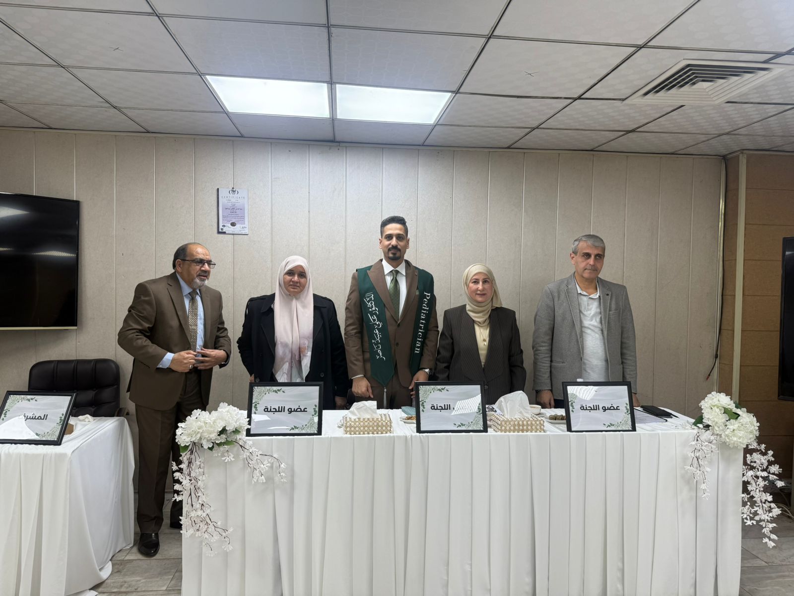 The discussions included the research projects of Dr. Ali Ubaid, Dr. Ali Jalil, and Dr. Naba Rahim. The projects were characterized by outstanding scientific presentations from the students and in-depth scientific discussions by the examining committees.