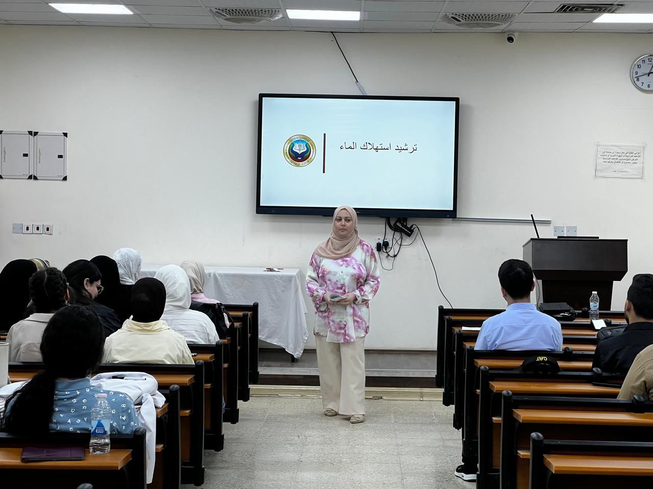 and was delivered by Professor Dr. Thanaa Rashid Abdul Rahman. She emphasized the individual and societal roles in preserving water resources and reinforcing positive habits that help reduce waste.
