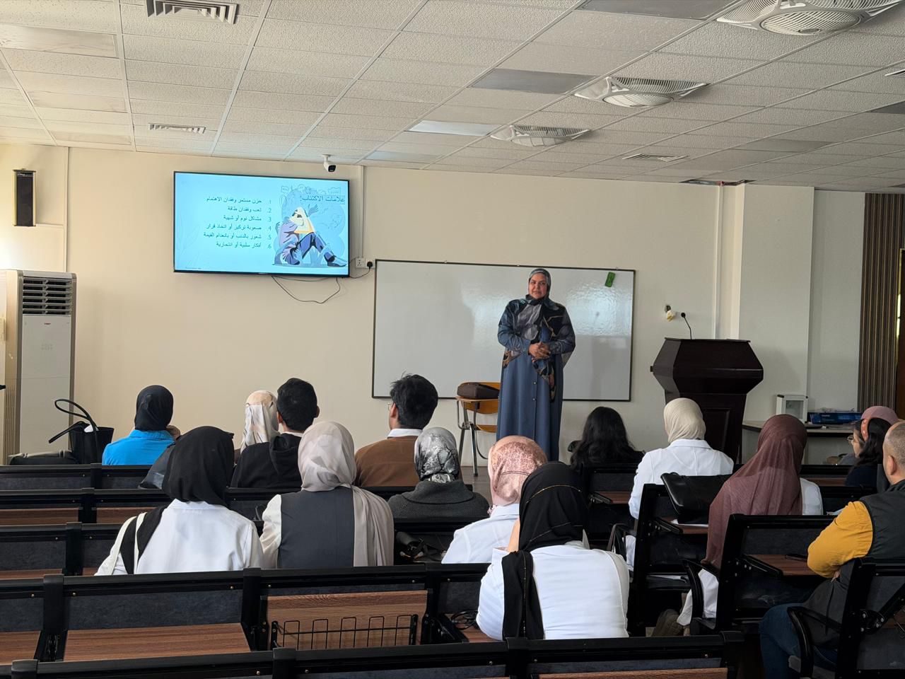 The first lecture was delivered by Lecturer Dr. Sahar Hassan Mushtat, while the second lecture was presented by Specialist Physician and Lecturer Dr. Haider Fares Hassan. The event witnessed notable student engagement through questions and discussions that enriched the dialogue.