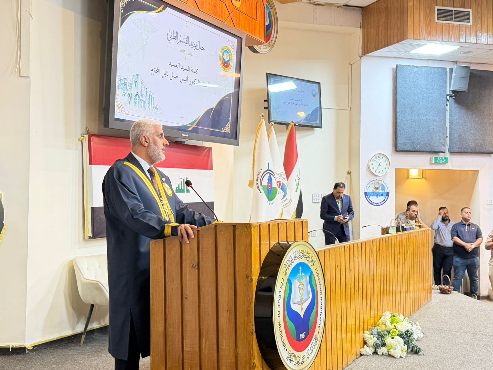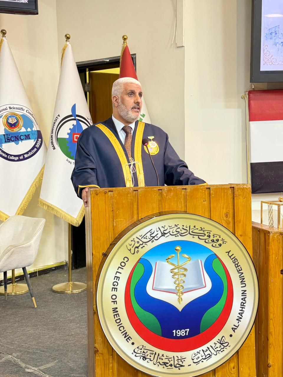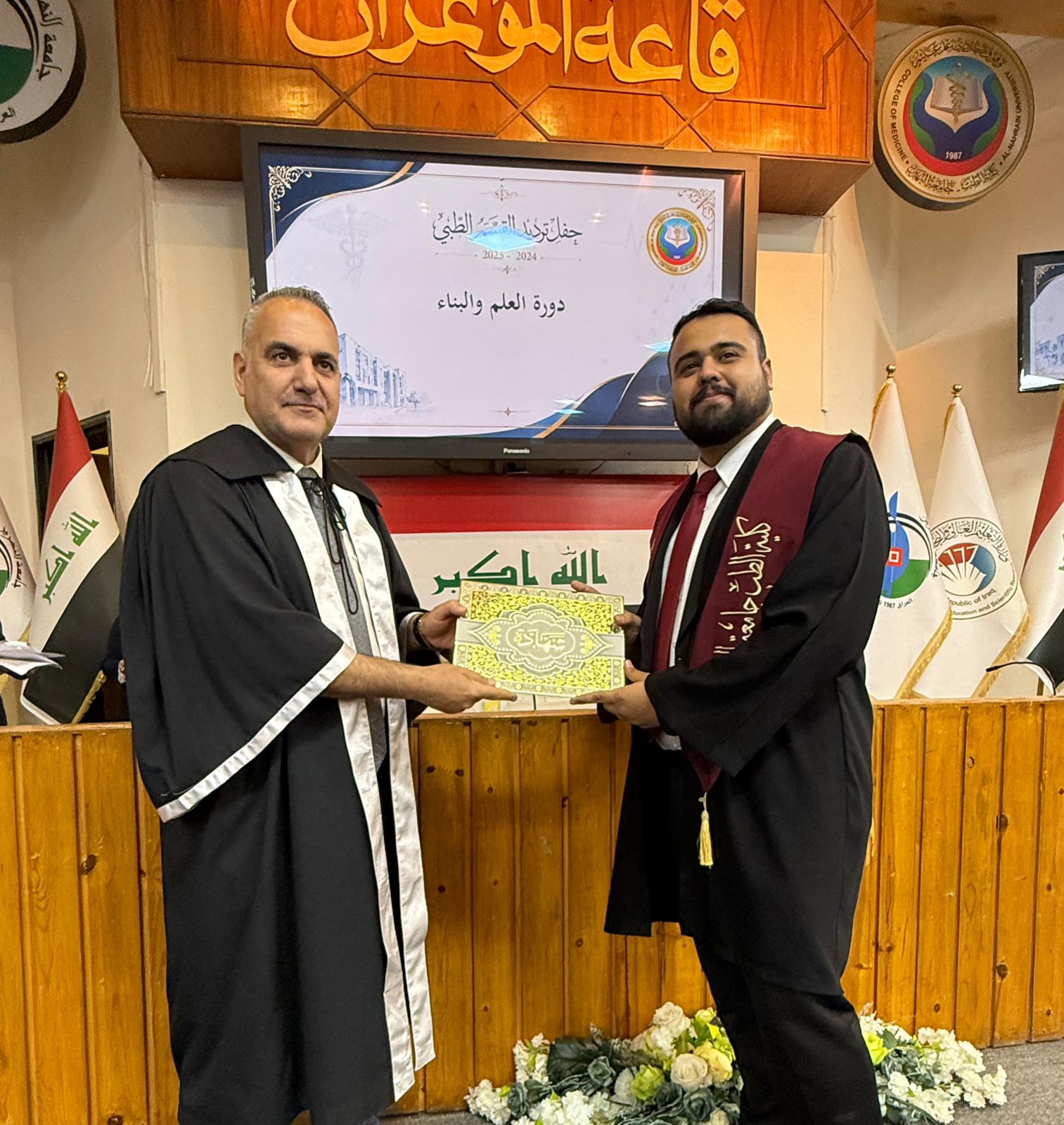 Under the patronage of the Dean of the College of Medicine at Al-Nahrain University, Professor Dr. (Anis Khalil Nayel), and in the presence of the Assistant Deans, Heads of Scientific Branches (Members of the College Council), as well as the Director of Al-Imamain Al-Kadhimain Medical City, Dr. (Nabil Jaber Al-Anzi), and a number of graduates’ families, the College of Medicine held the Medical Oath Ceremony for the graduates of the academic year 2024–2025 (Excellence and Creativity Class).