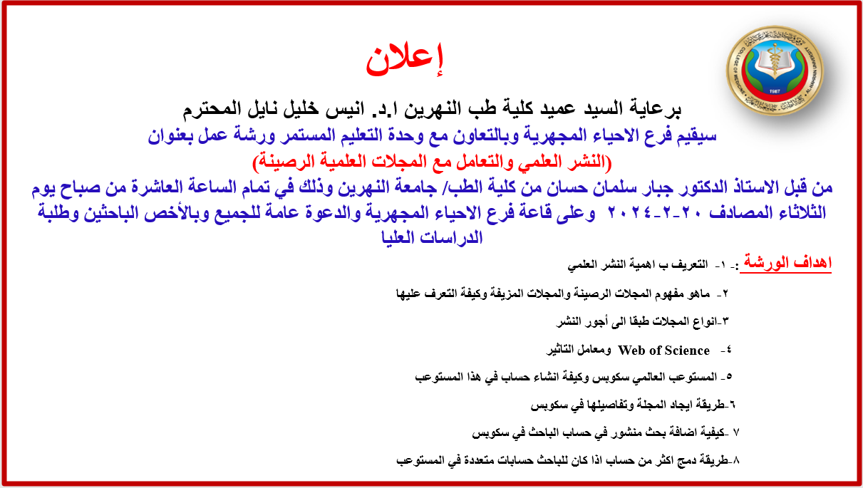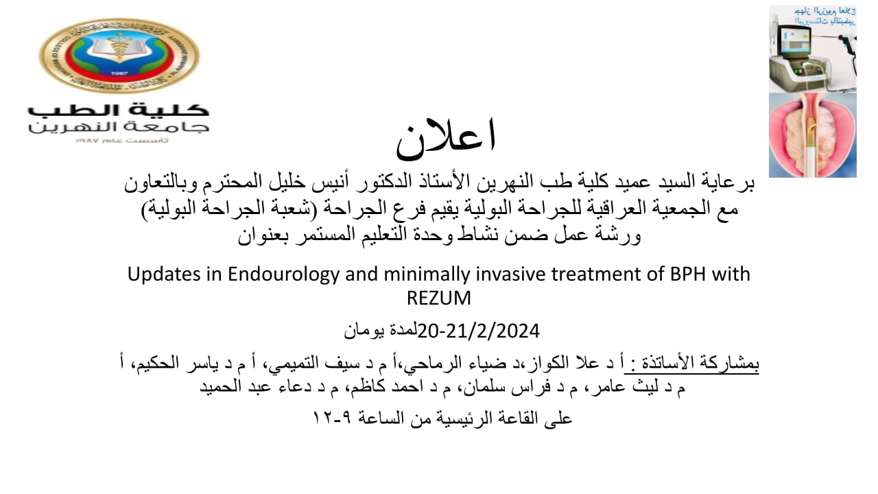 Under the patronage of the Dean of the College of Medicine, Al-Nahrain University, Prof. Dr. Anis Khalil Nail, and in the presence of the President of...