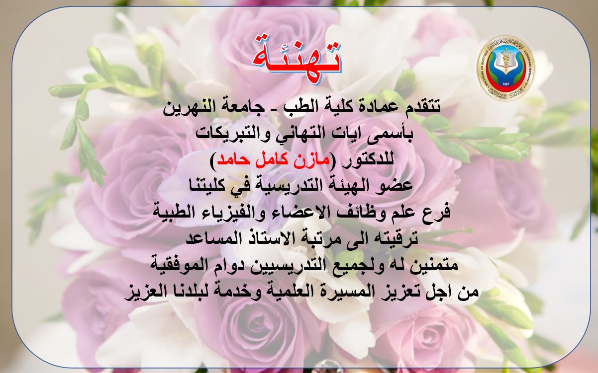 Re-election of Prof. Dr. (Anis Khalil Nayel), Dean of the College of Medicine, Al-Nahrain University, as Chairman of the Deans Committee of Medical Co...