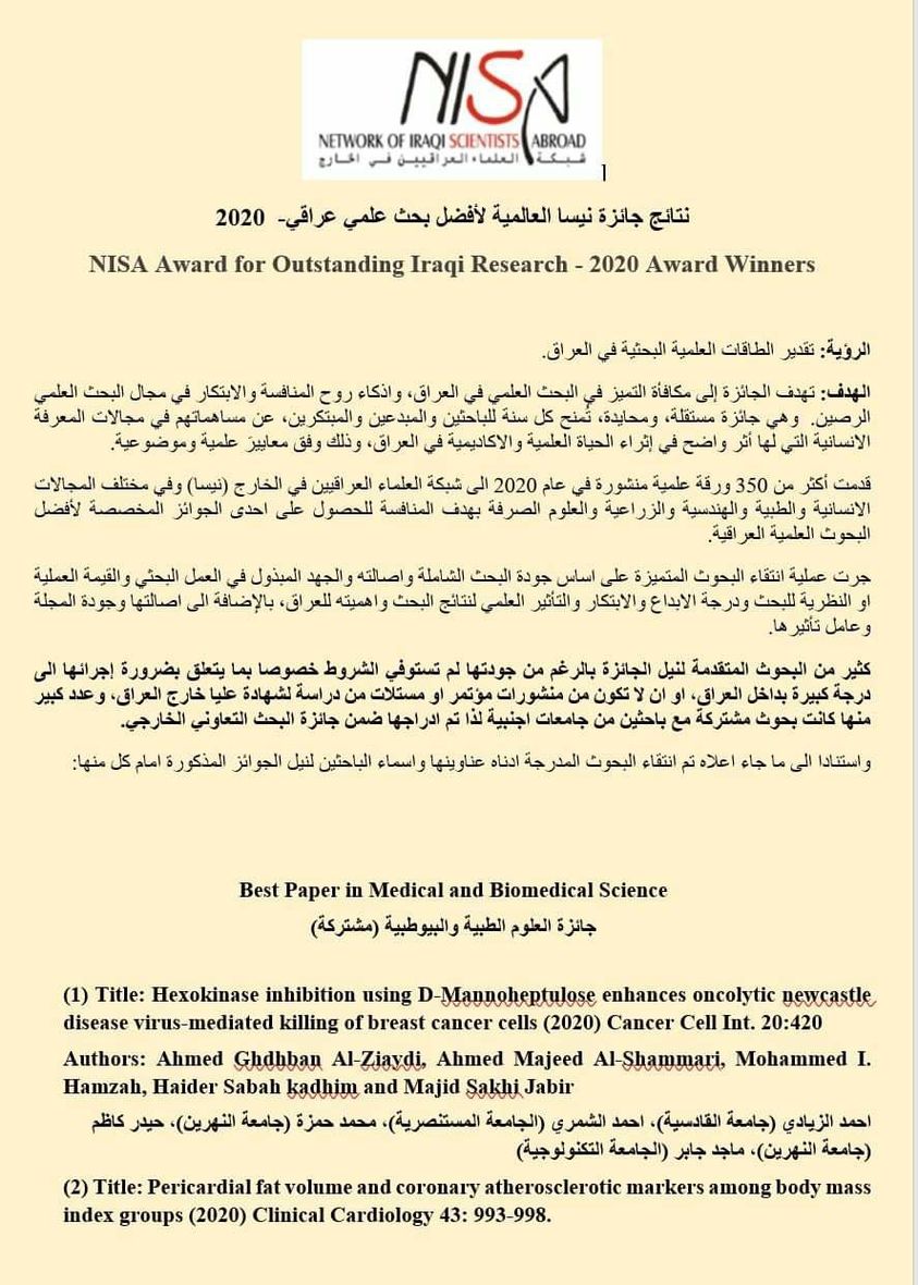 On 6/6/2021, the Dean of the College of Medicine - Al-Nahrain University, Prof. Dr. (Anis Khalil Nayel) honored the members of the Preparatory and Sci...