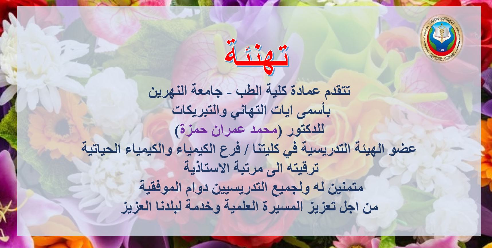 Under the patronage of the Dean of the College of Medicine, Al-Nahrain University, Prof. Dr. (Anis Khalil Nayel), In cooperation with the General Dire...