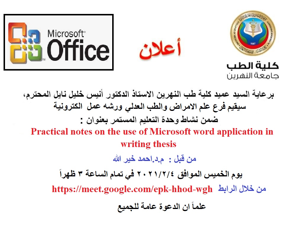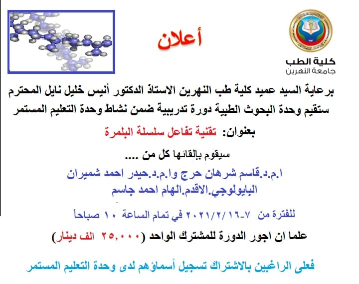 Under the patronage of the Dean of the Faculty of Medicine - Al-Nahrain University, Prof. Dr. (Anis Khalil Nayel), Within the activities of the Contin...