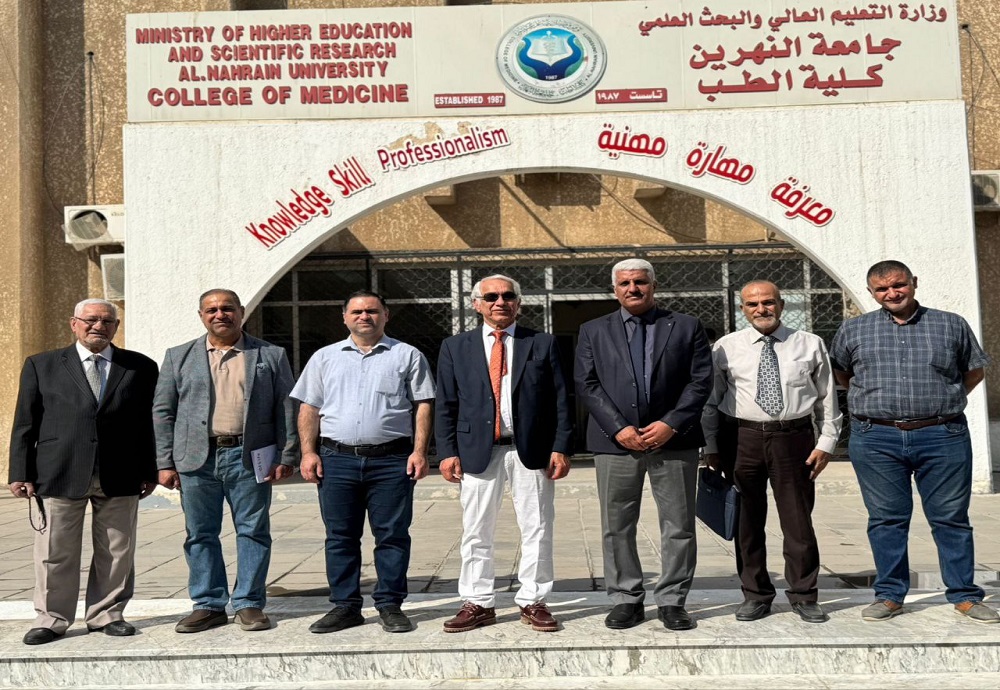 استقبل السيد عميد كلية الطب في جامعة النهرين الأستاذ الدكتور انيس خليل نايل الخبير الدولي والتدريسي في امبيريال كولج لندن  ورئيس الجمعية العربية للصحة العامة ومدير المركز التعاوني لمنظمة الصحة العالمية الاستاذ الدكتور سلمان الرواف بحضور معاون العميد للشؤون العلمية والطلبة وعدد من رؤساء الفروع العلمية ورئيس اللجنة الامتحانية في الكلية وجرى خلال اللقاء بحث سبل تعزيز التعاون العلمي والأكاديمي وتطوير برامج الصحة العامة ودعم المبادرات التعليمية التي تسهم في الارتقاء بمستوى الطلبة والكوادر الطبية وبهذه المناسبة قام السيد عميد الكلية الأستاذ الدكتور انيس خليل نايل بتسليم درع الكلية إلى الاستاذ الرواف تعبيرا عن التقدير والامتنان لجهوده المتميزة ودعمه المستمر في تطوير التعليم الطبي وتعزيز التعاون بين المؤسسات الأكاديمية داخل العراق وخارجه وتضمنت الزياره ايصاً جولة ميدانية برفقة عميد الكلية شملت القاعات الدراسية وعددا من مرافق الكلية واطلع خلالها على سير العملية التعليمية والتقى بمجموعة من طلبة الكلية مثمنا جهودهم في مجال البحث والتعلم . وتأتي هذه الزيارة ضمن إطار تعزيز الشراكات الأكاديمية مع المؤسسات الصحية العالمية ودعم مسيرة كلية طب النهرين نحو التميز العلمي والبحثي .
